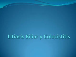 Este documento trata sobre la litiasis biliar y la colecistitis aguda. Brevemente: