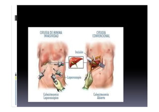 El documento habla sobre la litiasis vesicular o cálculos biliares. Explica la etiología, prevalencia y factores de riesgo de los cálculos biliares. Describe los síntomas de la litiasis asintomática y del cólico biliar. También cubre las complicaciones como la colecistitis aguda, litiasis coledociana y colangitis. Por último, detalla los métodos de diagnóstico y las posibles opciones terapéuticas como la colecistectomía laparoscópica.