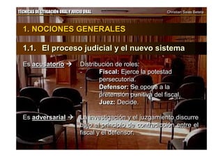 El documento aborda técnicas de litigación oral y pautas del juicio oral, destacando el nuevo sistema acusatorio y la importancia de la teoría del caso en el proceso judicial. Se plantean aspectos para construir una teoría del caso, los tipos de interrogatorios y las pautas para realizar cada uno de ellos, incluyendo el contrainterrogatorio y su objetivo de impugnar la credibilidad del testigo. Además, se discuten elementos y características esenciales que deben estar presentes en la elaboración de la teoría del caso.