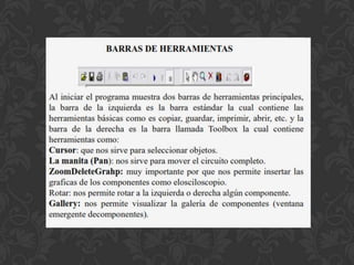 Este documento presenta un laboratorio virtual llamado Livewire que permite realizar prácticas de electrónica de manera simulada. Incluye una mesa de trabajo virtual con instrumentos y fuentes de energía regulables para reemplazar pilas reales, un espacio para almacenar componentes electrónicos y herramientas de conexión. Explica cómo instalar el software haciendo clic en el equipo y luego describe brevemente las funciones del simulador y recomienda practicar con él para aprender de manera segura.