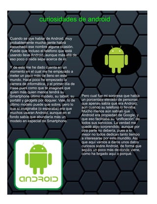 Las versiones de Android reciben nombres de postres o dulces según el orden alfabético, aunque las primeras versiones desarrolladas por otras compañías pueden haber tenido nombres diferentes. Google inició la tradición de nombrar las versiones con postres como Cupcake, Donut y Eclair.