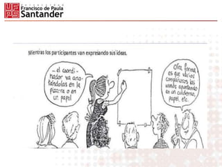 Este documento describe la técnica de brainstorming o tormenta de ideas para generar ideas de manera creativa en grupo. Explica que es una técnica en la que un grupo genera ideas libremente sin críticas, y luego analiza y organiza las ideas. También detalla tres formas de aplicar esta técnica: de manera no estructurada, en círculo de manera ordenada, o de forma silenciosa por escrito. El objetivo es aprovechar las ideas de todos los participantes para llegar a conclusiones sobre un tema.