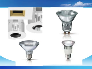 Las lámparas halógenas son lámparas incandescentes convencionales con un filamento de tungsteno y una pequeña cantidad de gas halógeno en su interior. Proporcionan una luz blanca brillante y duran casi el doble que las lámparas convencionales aunque consumen menos energía. Aunque emiten radiación ultravioleta, son más eficientes que las lámparas incandescentes estándar.