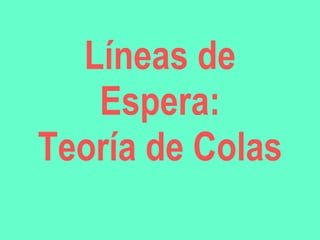 El documento describe los conceptos básicos de la teoría de colas, incluyendo las características de las llegadas, el servicio, y las medidas para evaluar el desempeño de sistemas de colas. La teoría de colas utiliza modelos matemáticos para analizar sistemas donde los clientes esperan en una línea para recibir un servicio, como bancos, restaurantes, etc. Estos modelos ayudan a determinar la capacidad óptima de servicio.