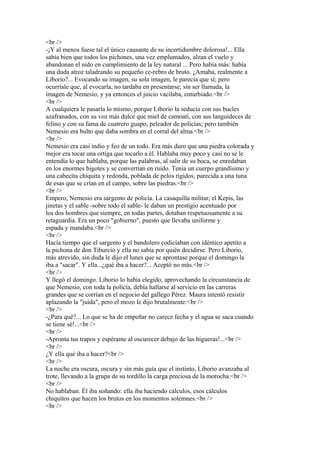 El cuento describe la historia de Maura, una joven que debe decidir entre Liborio, un bandido, y Nemesio, un policía, para abandonar el rancho de sus padres. Liborio intenta escapar con Maura a caballo, pero son perseguidos por la policía dirigida por Nemesio. Para escapar, Liborio intenta cruzar una laguna a caballo, pero es herido por un disparo y muere ahogado. Nemesio le ofrece a Maura irse con él, y aunque al principio duda, ella acepta porque su decisión