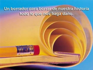 Para ser felices necesitamos herramientas para sanar el pasado, quitar máscaras, cortar ataduras y abrirnos al amor, la sabiduría y los recuerdos felices: un borrador, un jabón, unas tijeras, lentes, agujas, un cofre, reloj y rebobinador. También necesitamos zapatos para caminar con ética, una balanza para evaluar la vida, y un espejo para admirarnos a nosotros mismos.