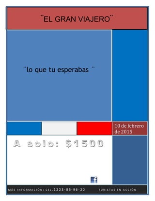 Este documento promueve un viaje de 7 noches y 8 días a Acapulco, México. El viaje incluye transporte, alojamiento en hotel, y comidas. Los lugares a visitar son La Caleta, Roqueta e Isla Roqueta, donde se puede bucear, y un acuario con peces y tiburones.