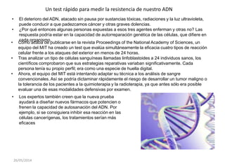 Un equipo del MIT ha creado un test que evalúa la capacidad de autorreparación del ADN de las células en menos de 24 horas. Al analizar linfoblastos de 24 individuos sanos, los científicos encontraron que las estrategias reparativas variaban entre personas, como una huella digital. Ahora intentan adaptar la técnica a análisis de sangre convencionales para evaluar rápidamente el riesgo de cáncer o la tolerancia a tratamientos.