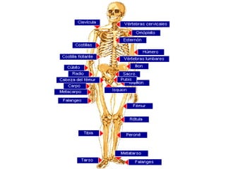 El documento describe la evolución y estructura del aparato locomotor humano. Explica que surgió primero la capacidad de contracción celular y luego la coordinación muscular a través del sistema nervioso. Los primeros organismos terrestres desarrollaron un esqueleto más rígido para soportar la gravedad. El esqueleto humano se compone de huesos, músculos y articulaciones que permiten el movimiento mediante la acción coordinada de estos sistemas. El documento también describe la clasificación, estructura y tipos de