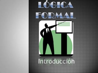 La lógica formal se originó en la cultura griega en el siglo IV a.C. y fue sistematizada por Aristóteles, quien la consideró un instrumento útil para la investigación y el conocimiento. La lógica estudia la estructura y forma del pensamiento para distinguir los razonamientos correctos de los incorrectos, centrándose en la forma en lugar del contenido. Examina conceptos básicos como el razonamiento, el juicio y el concepto.