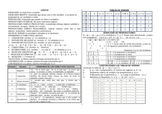 I. La lógica estudia los enunciados, proposiciones y conectivos lógicos. Un enunciado puede ser abierto o cerrado, mientras que una proposición puede ser verdadera o falsa.
