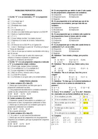 II. Existen varios tipos de proposiciones como las atómicas, predicativas y relacionales. También existen diferentes conectivos lógicos como la conjunción, disyunción y condicional.