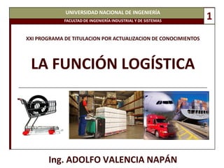 La función logística tiene como objetivo satisfacer las necesidades del cliente proporcionando los productos en el momento, lugar y cantidad adecuados, todo ello al mínimo costo. Comprende actividades como la compra de materias primas, fabricación, almacenaje y distribución de productos. Una buena gestión logística puede proporcionar ventajas competitivas a la empresa a través de la calidad y el costo. La logística es clave para entregar productos de calidad al cliente y reducir costos en toda la cadena de suministro.