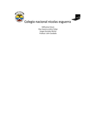 El documento menciona el Colegio Nacional Nicolás Esguerra y los nombres de dos estudiantes, Andrés Felipe Díaz Mazorca y Michel Vargas González, así como el nombre de su profesor John Caraballo.