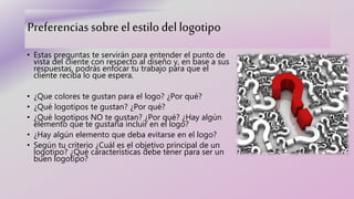 Este documento proporciona consejos para diseñar un logotipo efectivo. Recomienda que el diseñador realice una investigación sobre la audiencia y la competencia, establezca un proceso de diseño propio que incluya entrevistas con el cliente, y considere factores como el estilo, los colores, y el significado para comunicar la marca de manera clara. Además, sugiere evitar imitar otros logotipos y enfocarse en crear algo único que represente la identidad única de la empresa.