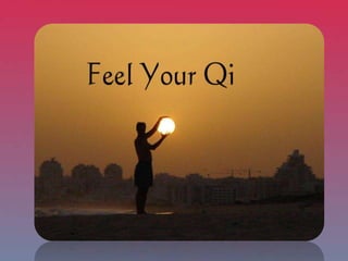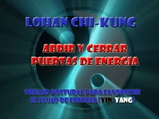 El documento describe los principios del Lohan Qigong, una práctica que implica el flujo de qi a través del cuerpo. Explica que el qi circula a través de meridianos y que hay tres "puertas" que actúan como centros de distribución de la energía vital. También describe tres dantien o centros de almacenamiento de qi en el cuerpo y los órganos asociados con cada uno. El documento proporciona instrucciones sobre la postura, respiración, apertura y cierre de las puertas durante la pr