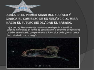 Las constelaciones son regiones de la bóveda celeste delimitadas por los antiguos y transmitidas entre culturas. Los astrónomos antiguos dividieron el zodíaco en doce signos nombrados por las constelaciones de Aries a Piscis. Cada signo representa una sección igual del anillo zodiacal cortado en los puntos equinocciales y dividido en seis partes.