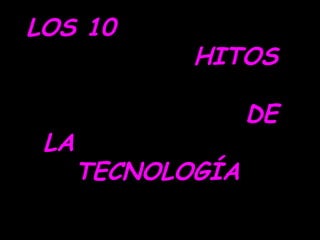 Este documento resume 10 hitos importantes en la historia de la tecnología: el fonógrafo, la rueda, el barco de vapor, el teléfono, el micrófono, el automóvil, el ordenador, la cámara de fotos, el avión y la medicina. Cada hito incluye una breve descripción de su invento o descubrimiento y su importancia histórica.