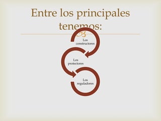 Los principales tipos de nutrientes son los constructores, los energéticos y los protectores. Los constructores ayudan a formar y mantener los tejidos del cuerpo, los energéticos proporcionan energía y calorías, y los protectores ayudan a regular procesos y proteger el cuerpo.