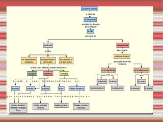 El documento habla sobre la nutrición humana y una dieta equilibrada. Explica los cuatro grupos principales de alimentos y la pirámide de alimentos. También discute la composición de los alimentos y las necesidades nutricionales del cuerpo humano. Además, enfatiza la importancia de evitar hábitos alimenticios inadecuados durante la adolescencia y establece que una dieta adolescente debe incluir un desayuno fuerte, una comida completa y una cena ligera con nutrientes sanos y variados.
