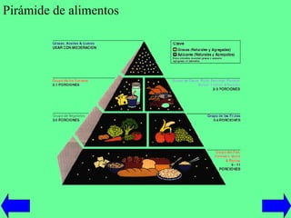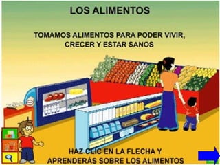 El documento explica que los seres humanos necesitan alimentarse para obtener energía y nutrientes que permitan al cuerpo crecer, desarrollarse y defenderse de enfermedades. Los alimentos se clasifican según su origen vegetal, animal o mineral, o por su descripción como lácteos, cárneos, farináceos y vegetales. Una alimentación equilibrada debe incluir hidratos de carbono, lípidos, proteínas, vitaminas y minerales para cubrir todas las necesidades del organismo.
