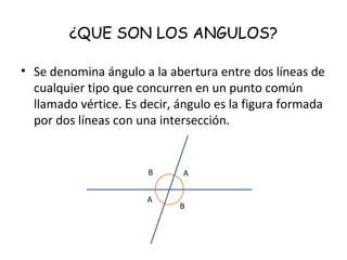 Este documento define qué son los ángulos y cómo se miden. Un ángulo se forma por la intersección de dos líneas en un punto llamado vértice. Se miden en radianes, grados sexagesimales o centesimales. Explica los tipos de ángulos como recto, agudo u obtuso y sus valores en grados. Finalmente, destaca la importancia de los ángulos en actividades cotidianas y trabajos, desde tareas sencillas hasta complejas construcciones que requieren de ángulos precisos.