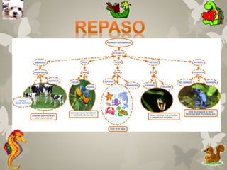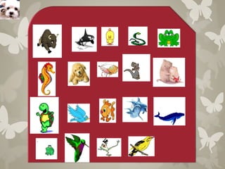 Este documento presenta información sobre la clasificación y características de diferentes animales. Explica que los animales se dividen en vertebrados e invertebrados. Dentro de los vertebrados describe a los mamíferos, aves, reptiles, anfibios y peces. También habla sobre los invertebrados, incluyendo artrópodos, equinodermos, gusanos y moluscos. Finalmente, incluye actividades como sopa de letras y recortar y pegar para reforzar los conceptos.