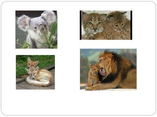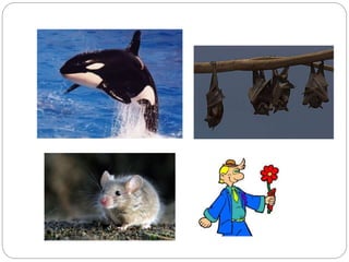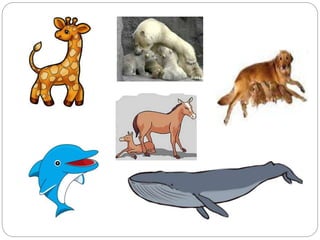 El documento clasifica los animales en mamíferos y ovíparos, y discute sus métodos de nacimiento, alimentación, estructura corporal. Los mamíferos dan a luz crías vivas mientras que los ovíparos ponen huevos, y los animales se dividen en herbívoros, carnívoros y omnívoros dependiendo de su dieta, así como en invertebrados y vertebrados según su estructura.