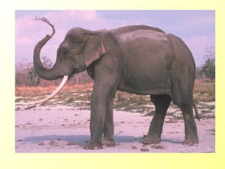 El documento menciona varios animales como arañas, elefantes, iguanas, osos y urracas, así como habas arpa.