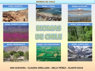 El bioma del Desierto Florido se ubica entre los 27°-29°S. Se caracteriza por tener un clima seco, aunque ocasionalmente hay precipitaciones que permiten la floración efímera de diversas especies como la añañuca, pata de guanaco y senecio. La fauna incluye aves como el cernícalo, aguiluchos chicos y mineros chicos, así como mamíferos como zorros culpeo y chilla y guanacos.