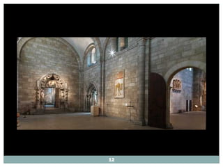 El documento describe la colección de arte medieval del Museo Metropolitano de Arte de Nueva York ubicado en The Cloisters. Incluye descripciones detalladas de cinco claustros medievales traídos de Europa y reconstruidos, así como obras de arte como frescos, esculturas y vitrales. Explica que el objetivo de The Cloisters es preservar y exhibir arte y arquitectura medieval europea para el público.