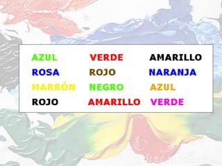 El documento presenta un poema en español sobre los colores. Los estudiantes escuchan el poema y participan. Luego, trabajan en grupos para crear su propio poema sobre los colores usando la estructura "color como objeto". Finalmente, los estudiantes comparten y discuten sus poemas.