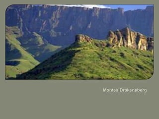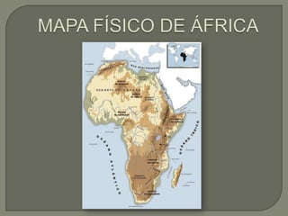 El documento describe las principales características geográficas de varias regiones del mundo, incluyendo sus cordilleras, ríos, lagos, climas y tipos de vegetación. Se mencionan las regiones de selva tropical, sabana, estepa y desierto de África y Asia. También se describen los climas cálidos, templados y fríos de América, así como sus regiones naturales como la selva, pradera y tundra. Por último, se resumen brevemente las características de Australia y Europa.