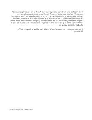 Este documento contiene extractos y resúmenes de varios pasajes de los cuatro evangelios canónicos. Incluye breves descripciones de la genealogía de Jesús, su nacimiento, bautismo, tentaciones en el desierto y primeros discípulos según los evangelios de Mateo, Marcos, Lucas y Juan.