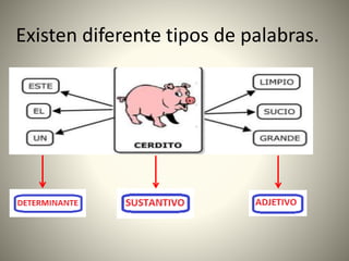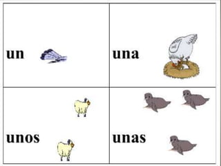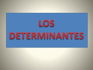 Este documento describe los diferentes tipos de determinantes en español, incluyendo artículos determinados e indeterminados, determinantes demostrativos, y determinantes posesivos. Los artículos determinados e indeterminados indican si un sustantivo se refiere a algo conocido o desconocido, mientras que los determinantes demostrativos y posesivos expresan cercanía, distancia o pertenencia.