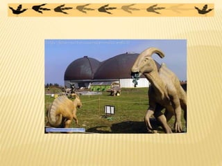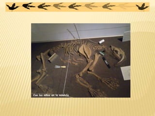 Este documento habla sobre los dinosaurios, animales prehistóricos que existieron hace 65 millones de años. Describe los diferentes tipos de dinosaurios, como herbívoros, carnívoros, grandes y pequeños, con plumas o escamas. Explica cómo los paleontólogos estudian los fósiles para aprender sobre los dinosaurios y sus características. Finalmente, menciona dónde podemos encontrar representaciones de dinosaurios hoy en día, como en películas, series de TV, museos y parques temáticos.