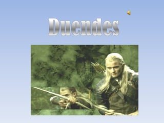 Los duendes son seres mitológicos elementales guardianes de los bosques según las mitologías celta y nórdica. Se les describe como pequeños, con orejas puntiagudas y peludos. Algunos duendes eran familiares de druidas y brujos que usaban para espionaje o hechizos. Son vulnerables al hierro, plata y a símbolos religiosos como el trébol de cuatro hojas o San Patricio. Según las leyendas, habitan en los bosques y cada 100 años raptan una hermosa