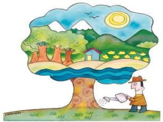El documento presenta una clasificación de los ecosistemas, destacando sus componentes abióticos y bióticos, así como ejemplos de ecosistemas terrestres y acuáticos. Se menciona la cadena y red alimenticia, así como el flujo energético dentro de estos sistemas. Se incluye una variedad de biomas, como bosques, desiertos y ecosistemas marinos y de agua dulce.
