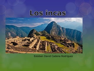 El Imperio Inca se extendió desde Ecuador hasta Chile, gobernado por el Inca como representante del dios del sol desde la capital Cuzco. Los incas cultivaron papas, maíz, coca y algodón, y domesticaron alpacas y vicuñas. Estaban organizados en ayllus o familias vecinas que trabajaban la tierra de 8 am a 5 pm, masticando coca cuando sentían hambre o cansancio. Los niños recibían educación acorde a su futuro rol en la sociedad y ceremonias especiales a los 14 años.