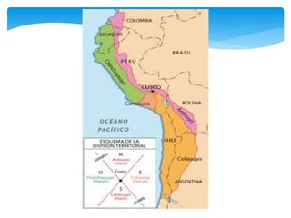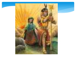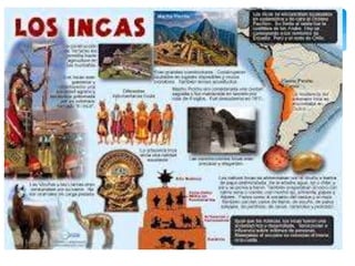 Los Incas crearon el imperio más grande de América del Sur, extendiéndose desde Cuzco a lo largo de los Andes. Bajo el control inca, el imperio gobernó a unos 12 millones de personas en Perú, Ecuador, Chile, Bolivia y Argentina. La leyenda fundacional habla de Manco Cápac y Mama Ocllo, enviados por el dios Inti para civilizar a la gente, fundando el Cuzco como capital de su imperio.