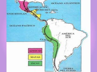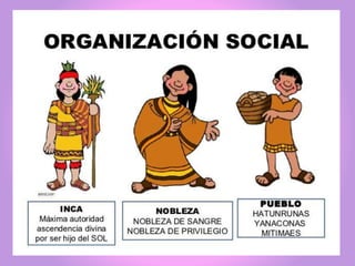 La cultura Inca se ubicó en la parte occidental de Sudamérica, particularmente en los Andes, entre los actuales países de Ecuador, Perú, Bolivia, Argentina y Chile. Los incas tenían una sociedad jerárquica gobernada por el Inca, con nobles y diferentes grupos de población. Adoraban a dioses como Inti, Quilla e Illapa. Su economía se basaba principalmente en la agricultura, la ganadería de auquénidos y la metalurgia. Una de sus construcciones más importantes fue Machu Picchu, actual patrimonio de