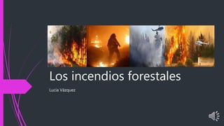 Un incendio forestal se produce cuando el fuego se extiende sin control a través de un área forestal o de vegetación, afectando a plantas, animales y el medio ambiente. Para que ocurra un incendio se necesitan tres elementos: oxígeno, calor y combustible. Los incendios forestales pueden ser causados de forma intencional o accidental y por factores naturales como rayos. Su extinción requiere de equipos y brigadas especializadas debido a los riesgos y a que las llamas pueden cambiar de dirección e intensidad rápidamente