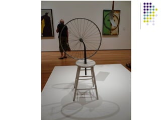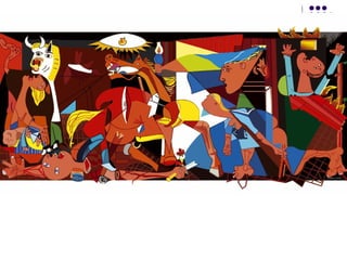 El documento resume los principales movimientos artísticos desde el expresionismo hasta la abstracción en el siglo XX, incluyendo expresionismo, fauvismo, cubismo, dadaísmo, surrealismo y abstracción. Los artistas más destacados mencionados son Picasso, Dalí, Duchamp, Pollock y Mondrian. El Guernica de Picasso se describe como una de sus obras más famosas.