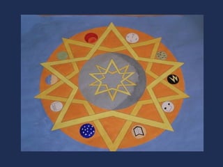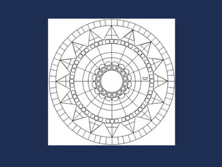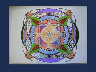 Los mandalas son formas geométricas concéntricas que se originaron en la cultura budista del Tíbet y se han utilizado desde tiempos antiguos como representaciones simbólicas de equilibrio, purificación y unidad. Dibujar o pintar mandalas ayuda a lograr el equilibrio personal y la meditación debido a que requieren concentración. Los mandalas modernos se usan en terapia de arte para explorar la identidad personal y las relaciones mediante la organización de imágenes y colores.