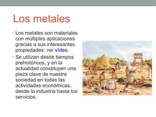 Los metales son materiales con propiedades mecánicas, térmicas y eléctricas que los hacen útiles para múltiples aplicaciones industriales y de la vida cotidiana. Se extraen de minerales mediante procesos que incluyen separación, fundición y conformación. Los metales más comunes son el hierro (acero), el aluminio, el cobre, el cinc y el titanio, que se utilizan en construcción, transporte, electrónica y más.