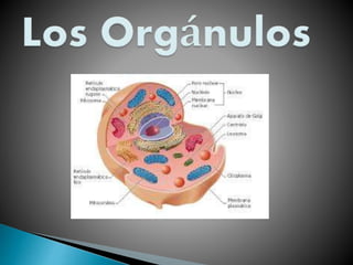 Los orgánulos más importantes de la célula son el retículo endoplasmático, las mitocondrias, los lisosomas, el aparato de Golgi, las vacuolas, el centrosoma y los cloroplastos. Cada uno tiene una función específica como la síntesis de proteínas, la respiración celular, la digestión, el transporte de sustancias y la división celular.