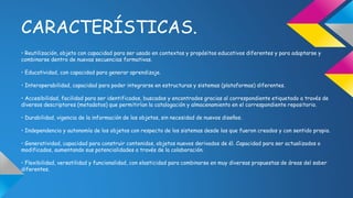 Un objeto virtual de aprendizaje (OVA) es un recurso pedagógico creado para propósitos educativos que puede ser reutilizado, generar aprendizaje, integrarse en diferentes plataformas, ser accesible a través de metadatos, duradero y flexible. Los OVAs pueden usarse como objetos informativos, de aprendizaje, cursos o colecciones y pueden organizarse en redes sobre temas específicos.