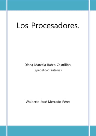 El documento describe los diferentes tipos de procesadores, incluyendo sus características y usos. Menciona procesadores como Pentium, Core i3, Core i5, AMD Phenom y Xeon. Explica que la velocidad del procesador depende de factores como el reloj del sistema y el ancho del bus.
