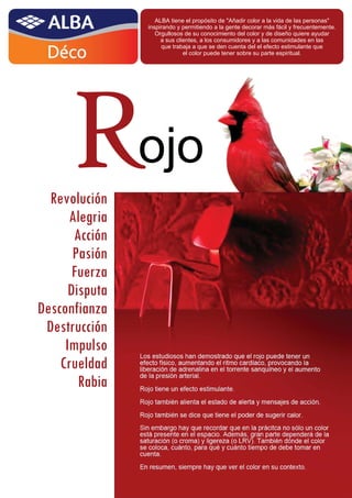 ALBA tiene el propósito de añadir color a la vida de las personas inspirando y permitiendo a la gente decorar más fácil y frecuentemente. Orgullosos de su conocimiento del color y de diseño quiere ayudar a sus clientes, a los consumidores y a las comunidades en las que trabaja a que se den cuenta del el efecto estimulante que el color puede tener sobre su parte espiritual.