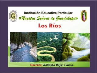 Los ríos son corrientes naturales de agua que fluyen desde áreas elevadas hacia áreas más bajas. Proveen agua dulce para el consumo humano y permiten generar energía e impulsar la economía. Un río tiene una naciente, un curso que puede dividirse en alto, medio y bajo, y una desembocadura que puede ser un estuario o un delta.